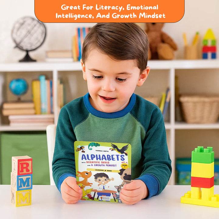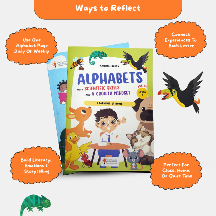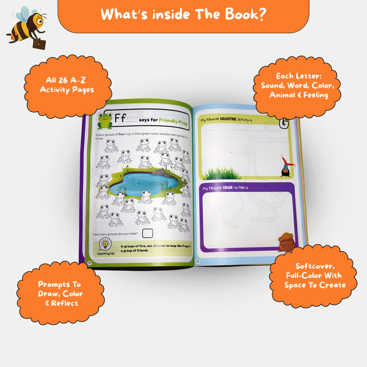 This alphabet activity book connects each letter to an animal, action, color, and emotion — helping children explore language while building self-awareness, creativity, and scientific thinking.